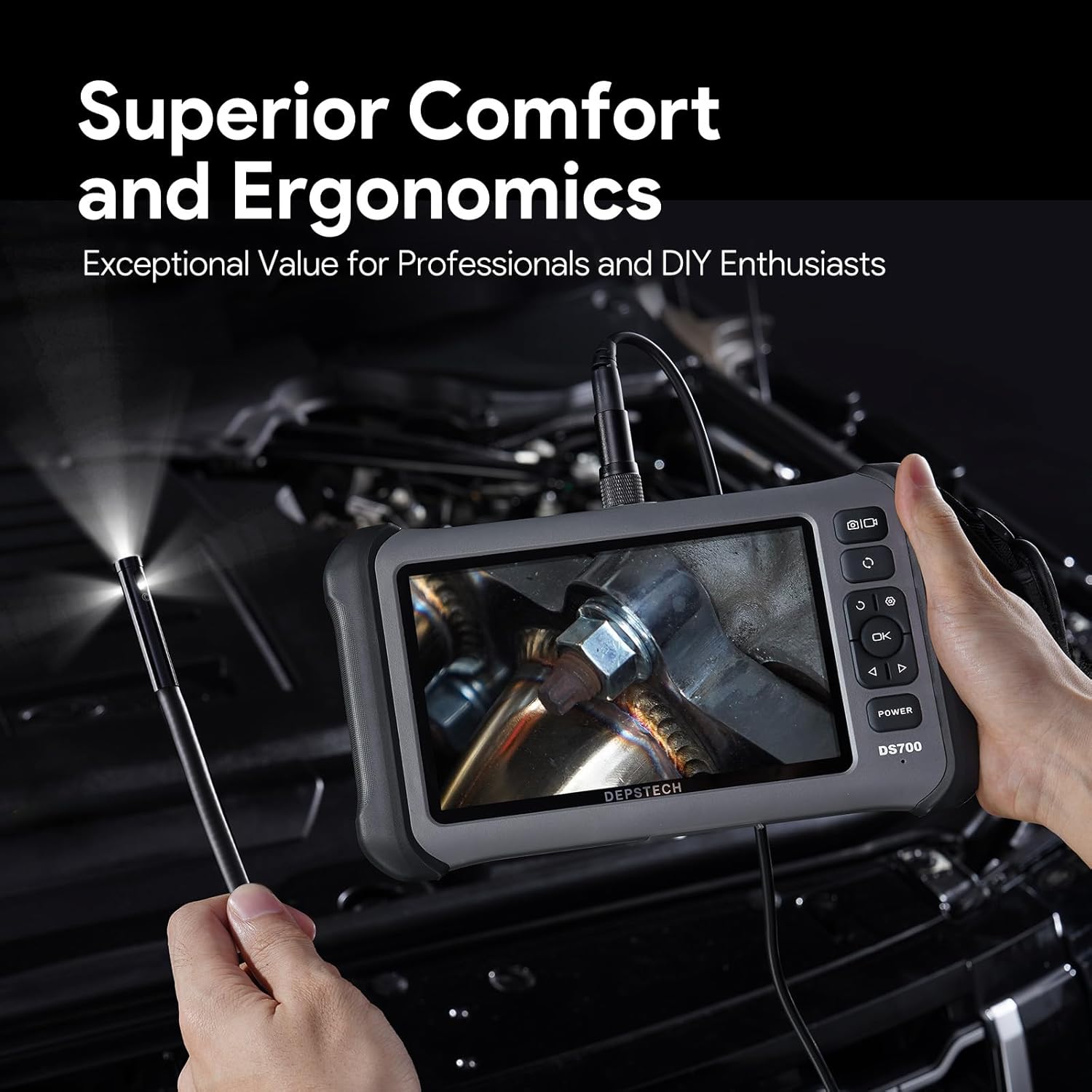 【Enhanced Visibility in Confined Spaces】With 8 adjustable LED lights and Bluart 3.0 technology, 700SE endoscope delivers brighter illumination and maintains HD clarity even in low-light conditions, allowing users to conduct inspections with confidence regardless of the lighting environment.