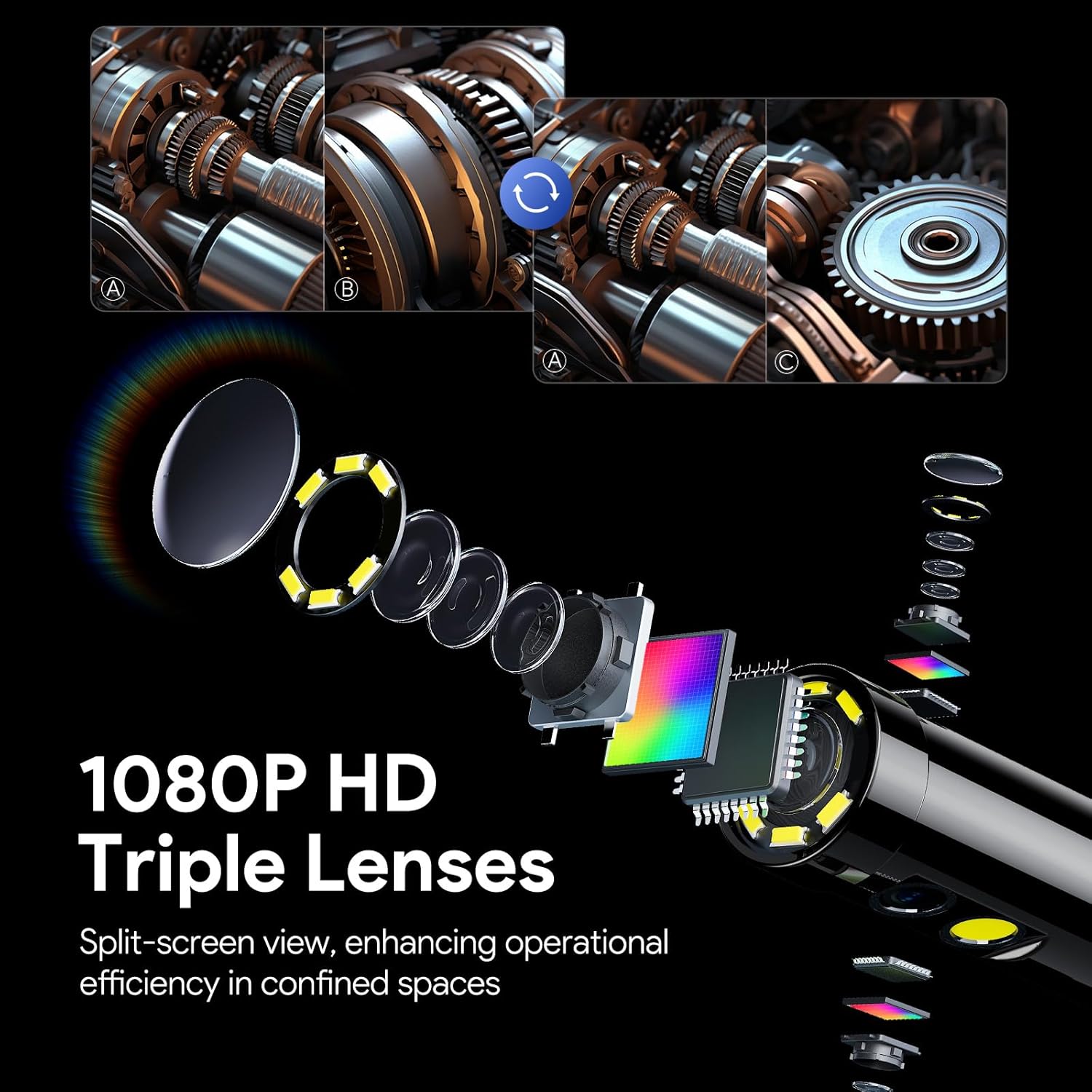 【Professional Quality Inspection】: Equipped with triple lenses and a 7″IPS screen, the 700SE Borescope allows for multiple viewing angles and split-screen mode. With its ability to switch between main-side lenses seamlessly, users can effortlessly navigate tight spaces without the need for lens adjustments. ensuring comprehensive inspection coverage without missing any details.