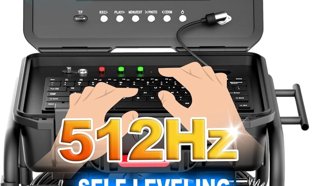 Anysun All-in-1 Sewer Camera 512Hz, Distance Counter, Self-Leveling, Keyboard, 1-Touch Video/Audio, 165Ft Pipe Inspection Camera with 9″ 1080P Screen Sewer Drain Camera IP68 Industrial Borescope, 16GB