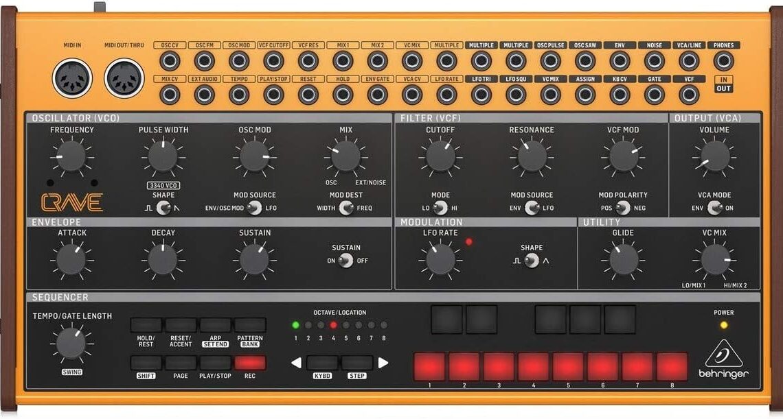 Behringer CRAVE Analog Synthesizer Analog Semi-Modular Synthesizer with 3340 VCO, Classic Ladder Filter, 32-Step Sequencer and 16-Voice Poly Chain