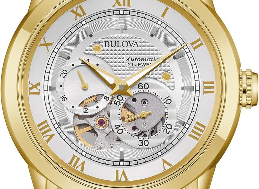 Bulova Men’s Classic Sutton 4-Hand Automatic Watch, 24-Hour Sub Dial, Open Aperture, Self-Winding, Exhibition Caseback, Double Curved Mineral Crystal, Luminous Hands, 42mm