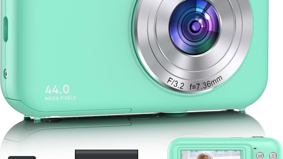 Digital Camera 1080P, FHD Digital Camera for Kids, 44MP Point and Shoot Camera with 32GB SD Card, 16X Zoom Anti Shake, Compact Portable Camera for Boys Girls Teens Beginners- Green