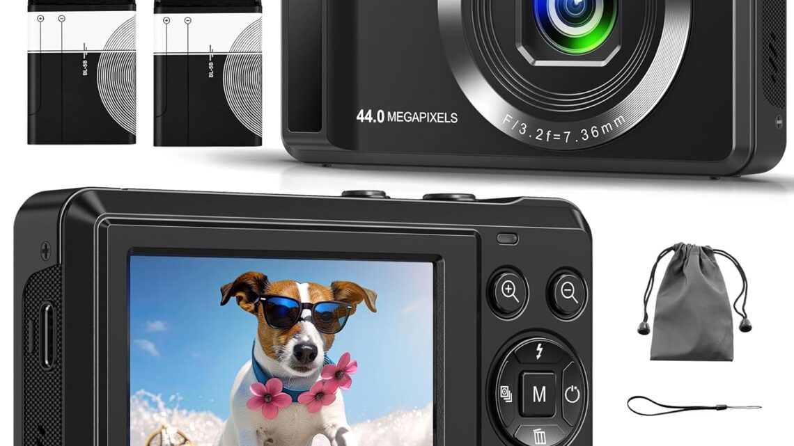 Digital Camera – 4K 44MP UHD Digital Cameras for Photography – Autofocus Point and Shoot Vlogging Camera with 16X Zoom, 32GB SD Card, 2 Batteries – Compact Small Camera for Kids Teens Boys Girls