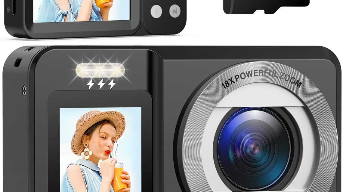 Digital Camera, 4K 64MP Dual Screens Camera,Point and Shoot Digital Camera with 18X Zoom & 32GB SD Card,Portable Rechargeable YouTube Vlogging Camera for Kids Teens Adult Beginner(Black)