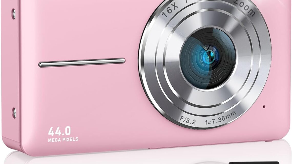 Digital Camera for Kids, 1080P FHD Camera, 44MP Point and Shoot Digital Camera for Pictures with 32GB Card, 16X Zoom, Compact Small Vintage Camera Gifts for Teens Kids Boys Girls(Pink)