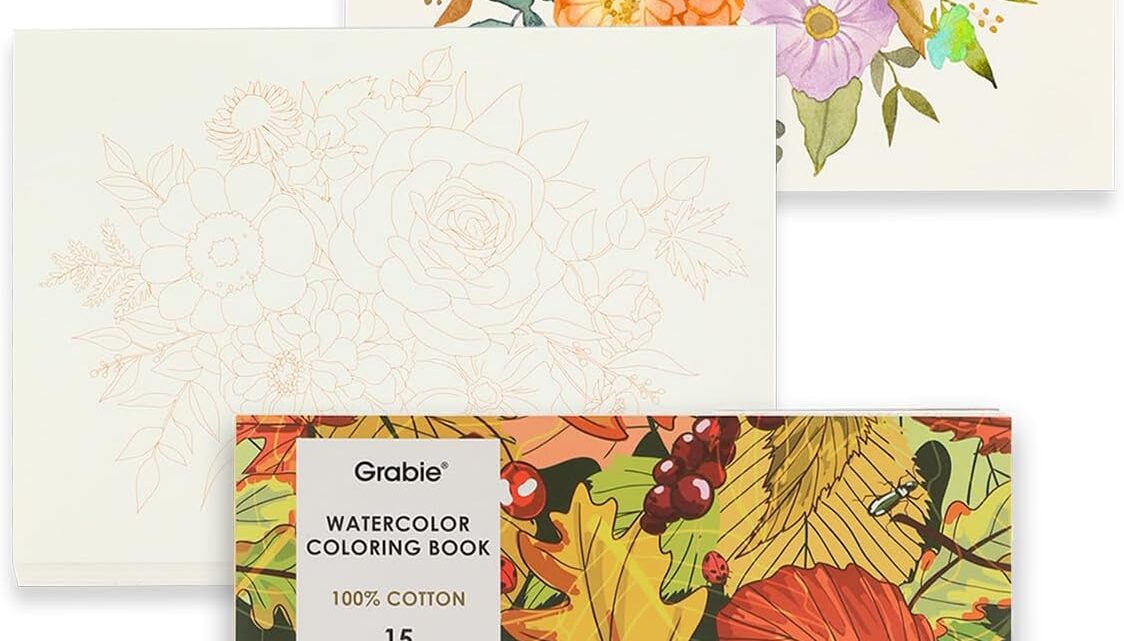 Grabie Watercolor Coloring Book, Watercolor Book, 15 Sheets of Enchanting Creations, A5 (8.3 x 5.8), Glue Bound, Watercolor Books for Adults: Ignite Your Artistic Expression on 100% Cotton Paper