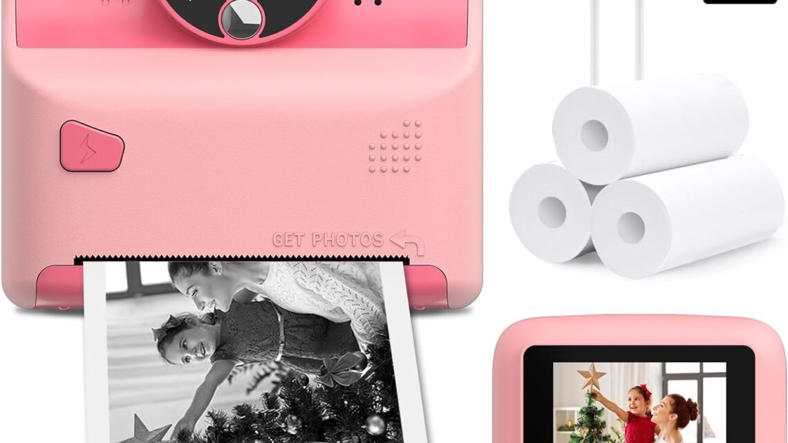 Instant Print Camera for Kids, Christmas Birthday Gift for 3-12 Year Old Girls Boys, Children Digital Camera Print Black and White Photo for Toddler Toys, 2.4 inch Screen with 32GB Card (Pink)