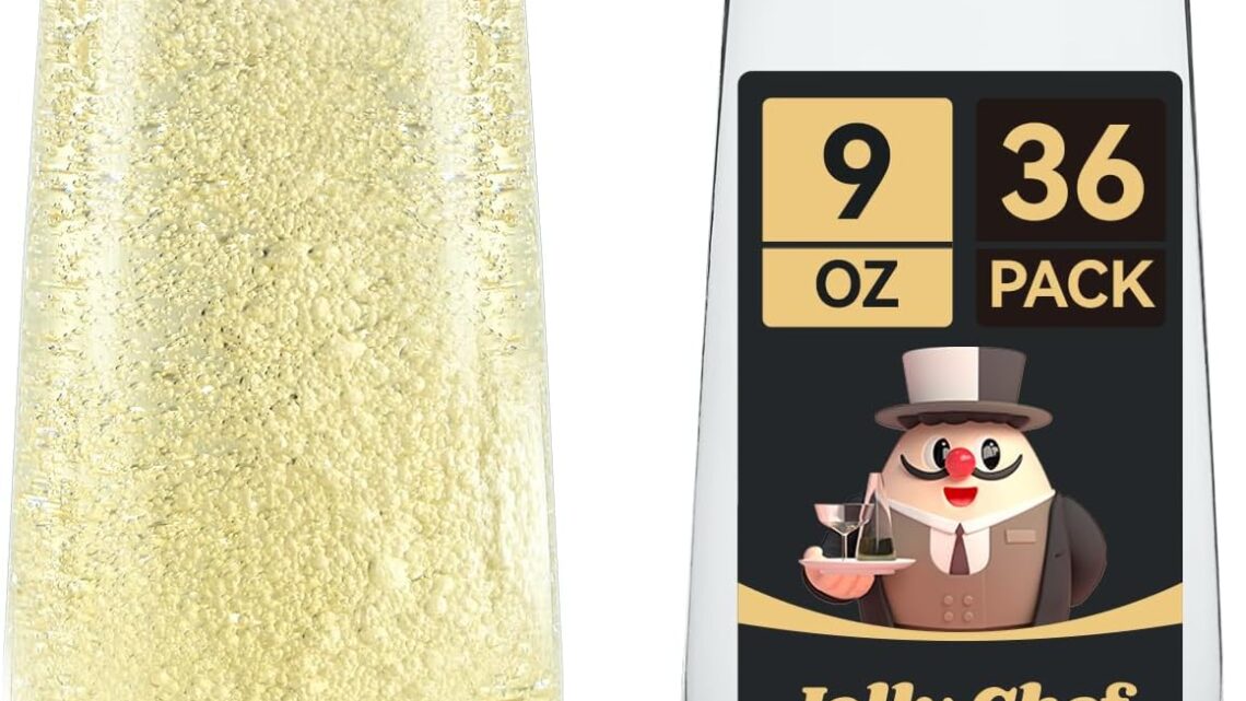 JOLLY CHEF 36 Pack Stemless Plastic Champagne Flutes 9 oz, Crystal Clear Stemless Plastic Toasting Glasses, Clear Disposable Unbreakable Drinkware Ideal for Wedding, Birthday, Party