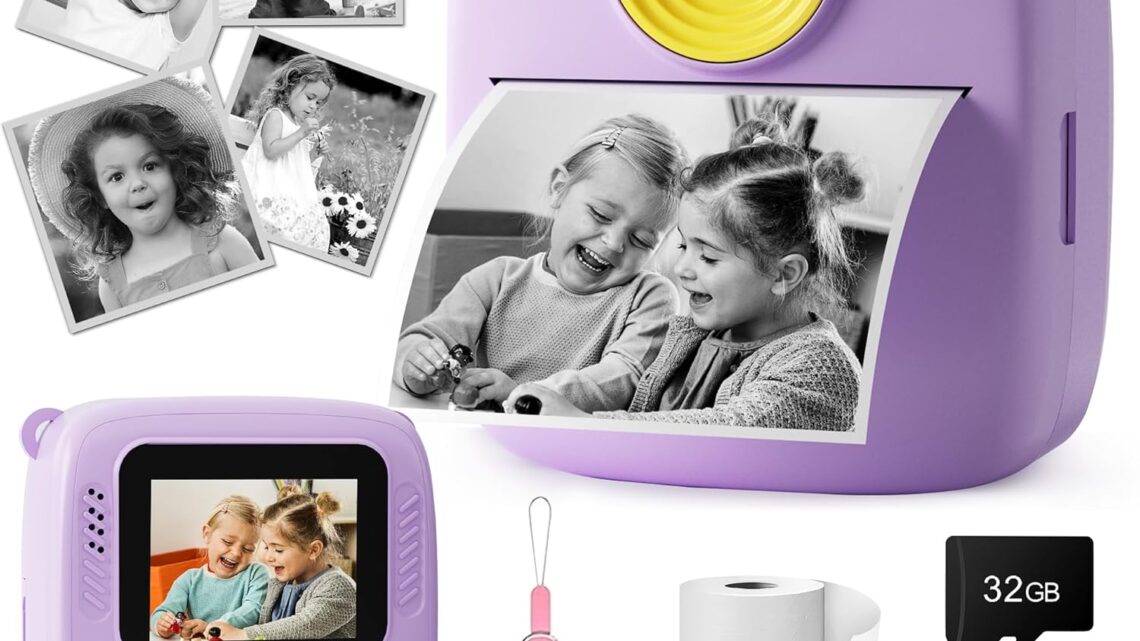 Kids Camera Instant Print – 1080P HD Instant Print Photo Digital Cameras for Kids – Christmas Birthday Gifts for Age 6 7 8 9 10 11 12 Year Old Girls, Portable Toys Camera (Purple)