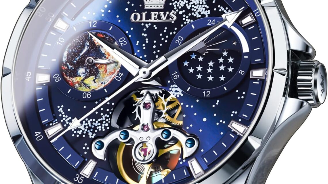 OLEVS Men’s Automatic Mechanical Watches Luxury Dress Waterproof Self Winding Moon Phase Chronograph Stainless Steel Luminous Date Tourbillon Wristwatch for Men