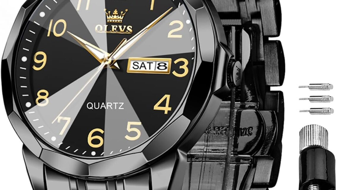 OLEVS Watch for Men Luxury Dress Analog Quartz Stainless Steel Waterproof Luminous Date Diamond Business Two Tone Casual Wrist Watch