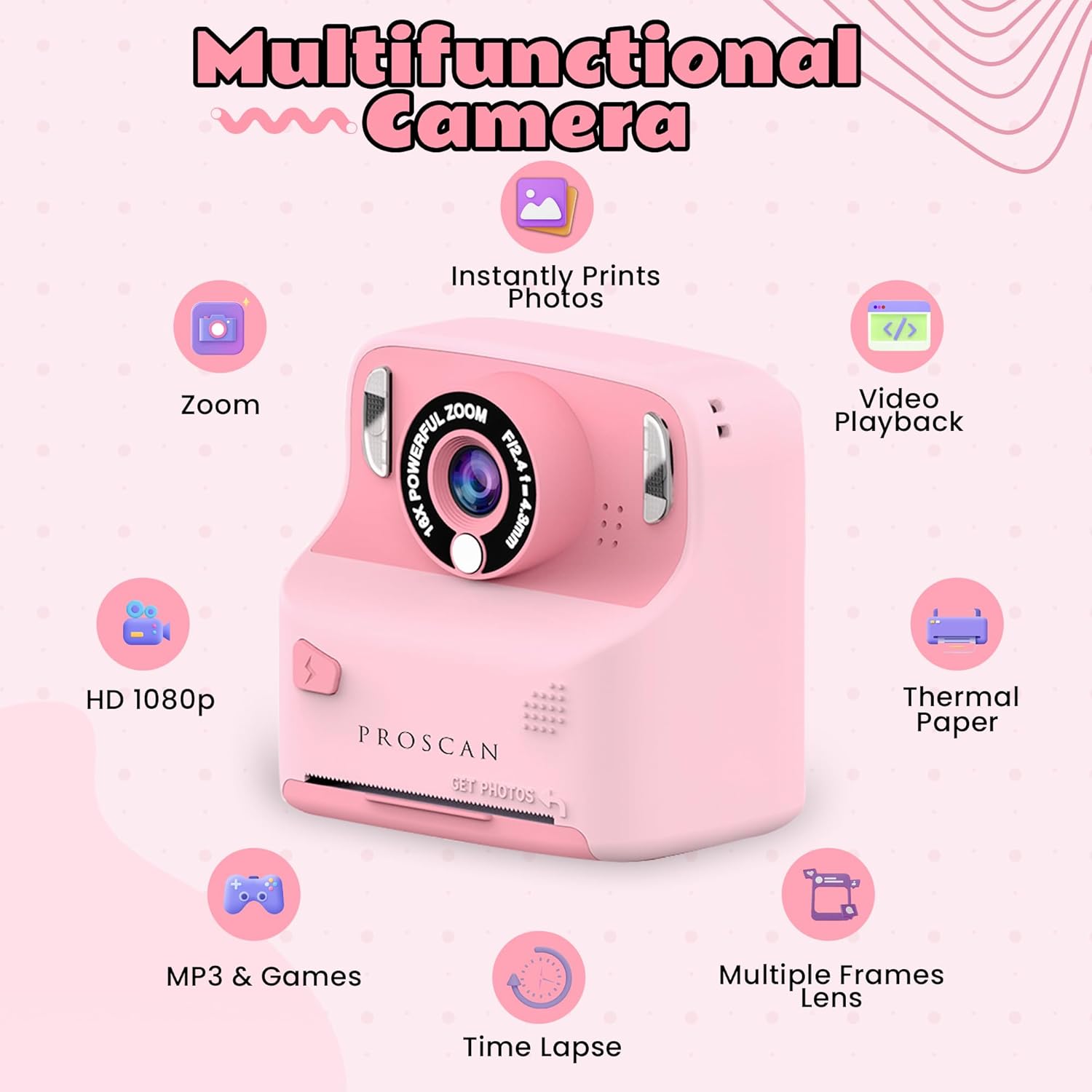 PROSCAN Childrens Digital Camera – Color Instant Print Camera for Kids | Instant Cameras That Print Photos for Kids | Kids Thermal Camera Instant Print