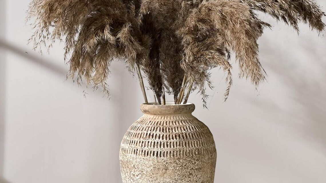 【Enjoy DIY Flower Arrangements】Rustic vase is suitable for DIY flower arrangements, natural pampas grass, palm leaves, eucalyptus, dandelions, reeds, cattails and other green plants, cherry blossoms, flower stems, dried flowers, fresh flowers, botanical artificial flowers, fake flowers, feathers, etc.