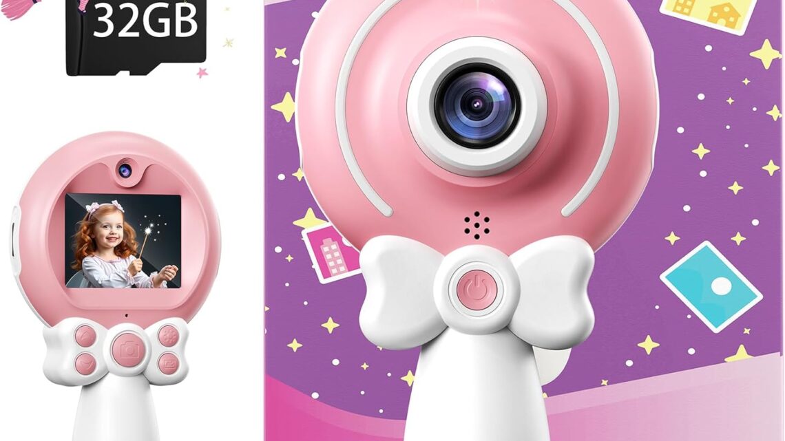 TEKFUN Kids Camera Toy for Girls Age 3-9, Magic Wand with Bow Handheld Camera, Portable 1080P HD Video Selfie Digital Camera with 32GB SD Card, Christmas Birthday Gifts for Toddler, Pink