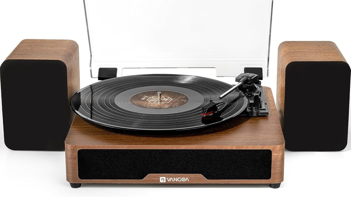 All-in-one Vinyl Record Player: Vangoa Vinyl Player includes 2* Stereo Bookshelf Speakers, 1* 9V/1.3A DC Adapter, 1* Record Weight Stabilizer and 1* Vinyl Player Brush. Perfect as Holiday Gift Sets, Christmas gifts 2024. As a gift, it also allows the recipient to feel your heart.