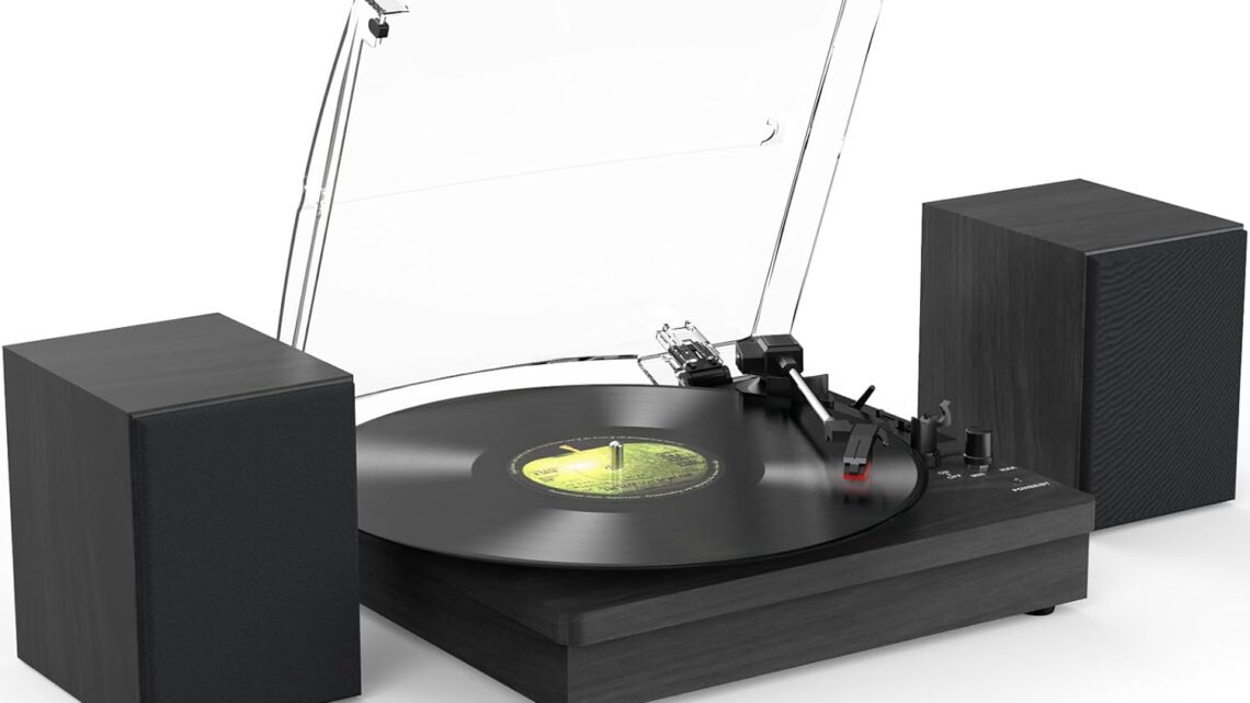 Record Player with Speakers – With two supplied speakers, you can enjoy the stereo and pleasant music. You also can connect to your own externally powered speakers via dual RCA output cables