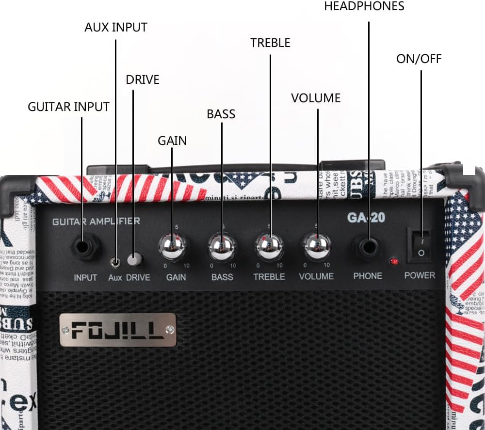 Fojill Electric Guitar Amplifier Amp Practice Small Portable Travel Mini Amp with Headphone Jack Aux Distortion Gain Treble Bass Volume Jack