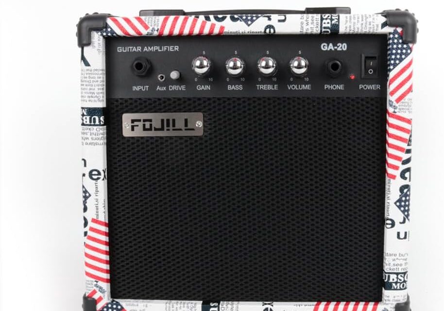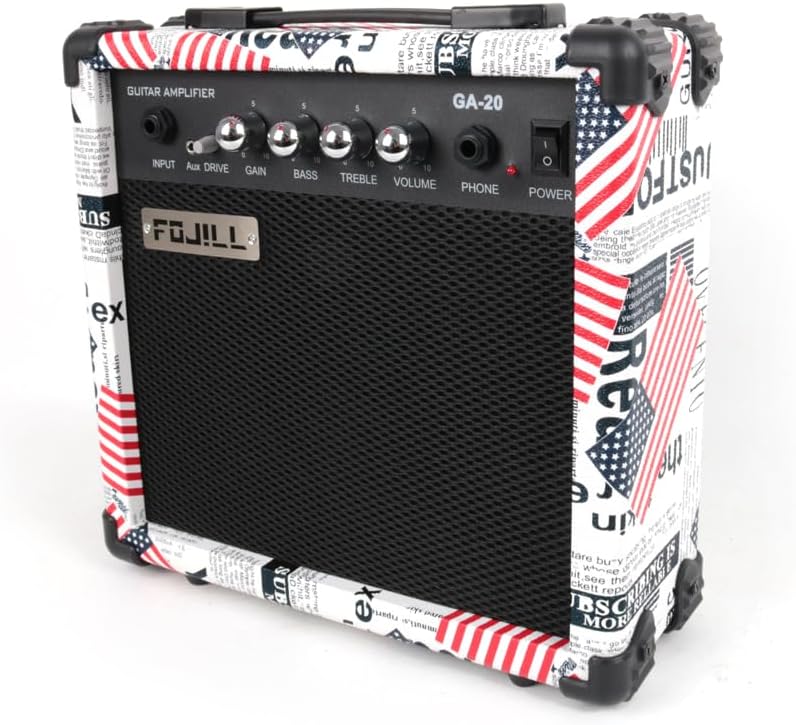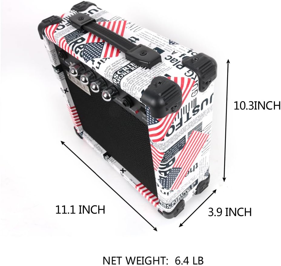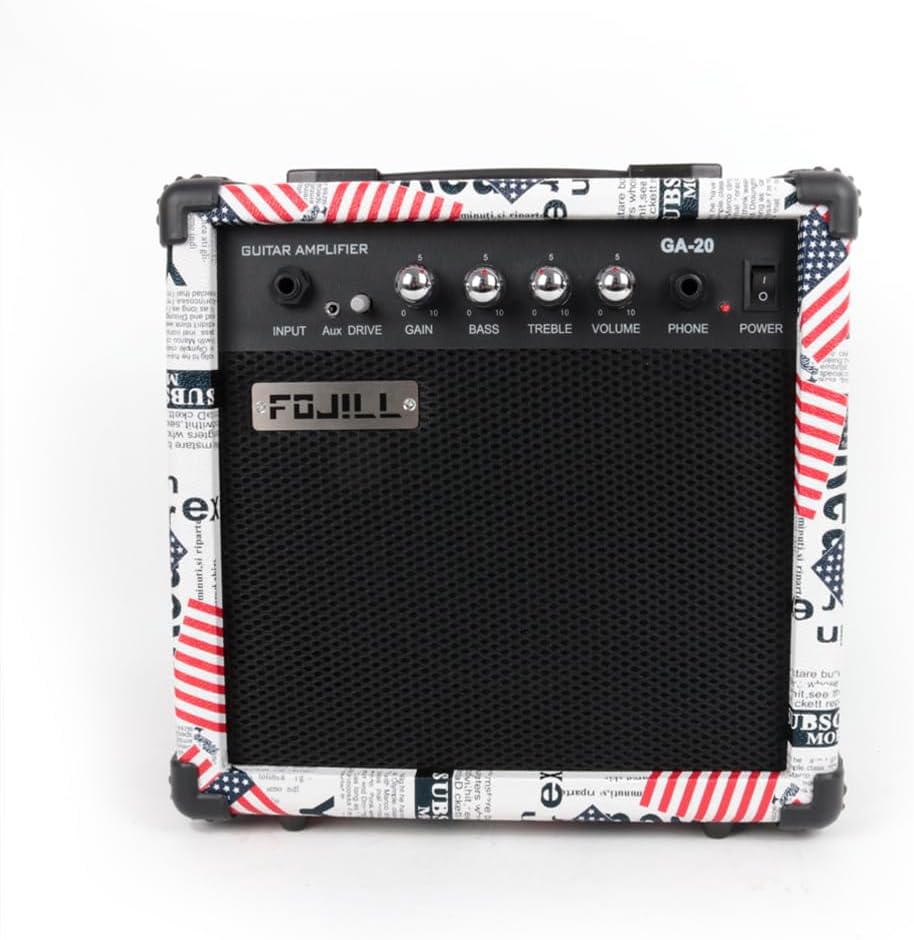 20W Watt Electric Guitar Amplifier Amp Practice Small Portable Travel Mini Amp with Headphone Jack Aux Distortion Gain Treble Bass Volume Jack (Flag)