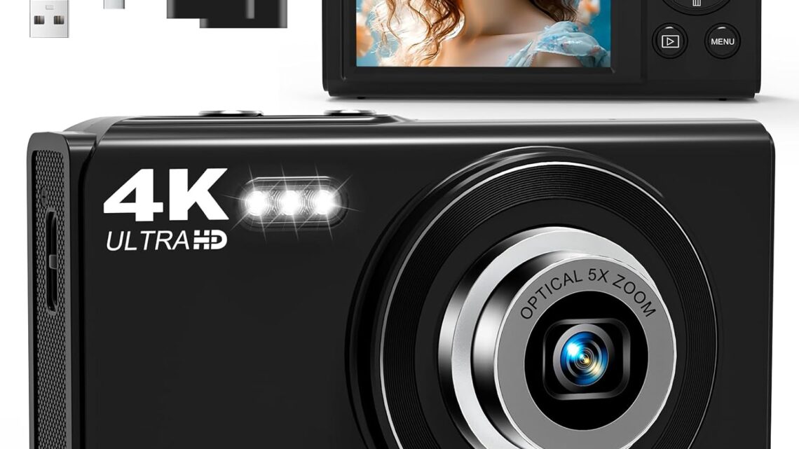 Digital Camera for Photography with 5X Optical Zoom, 4K WiFi Vlogging Camera for YouTube with Autofocus, 64MP Compact Travel Camera with 32GB Card, 2 Batteries for Beginners and Teens(Black)