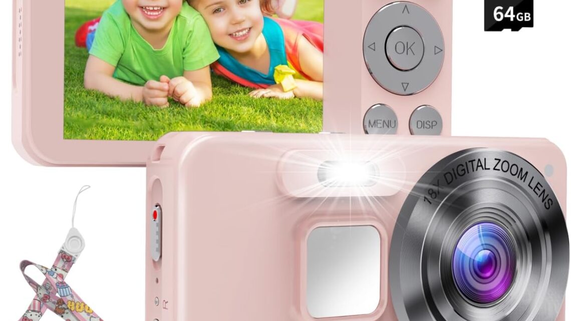 Digital Camera Kids UHD 4K Photography: 64MP Point and Shoot Cameras for Vlogging with 64GB Card 18X Zoom- Compact Small Vintage Camera for Boys Girls Teens Beginners, Portable Pocket Cameras, Pink