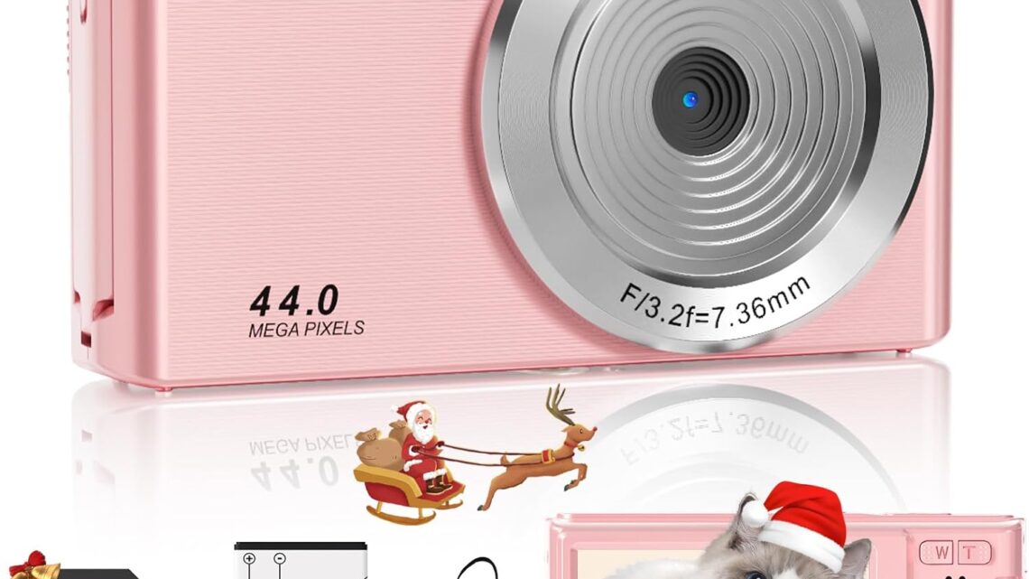 FHD 4K 44MP Digital Camera with 64GB SD Card 16X Zoom Pink Compact Cheap Point and Shoot Digital Camera Video Small Simple Portable Cameras Auto Focus 1080P Camera for Teens Boys Girls Kids Pink