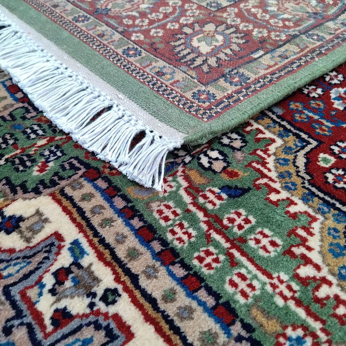 4×6 feet handmade 100% pure wool green rug for bedroom or any room export quality rug made by artisans of Gwalior Madhya Pradesh India. Gives premium and luxury look to your home.