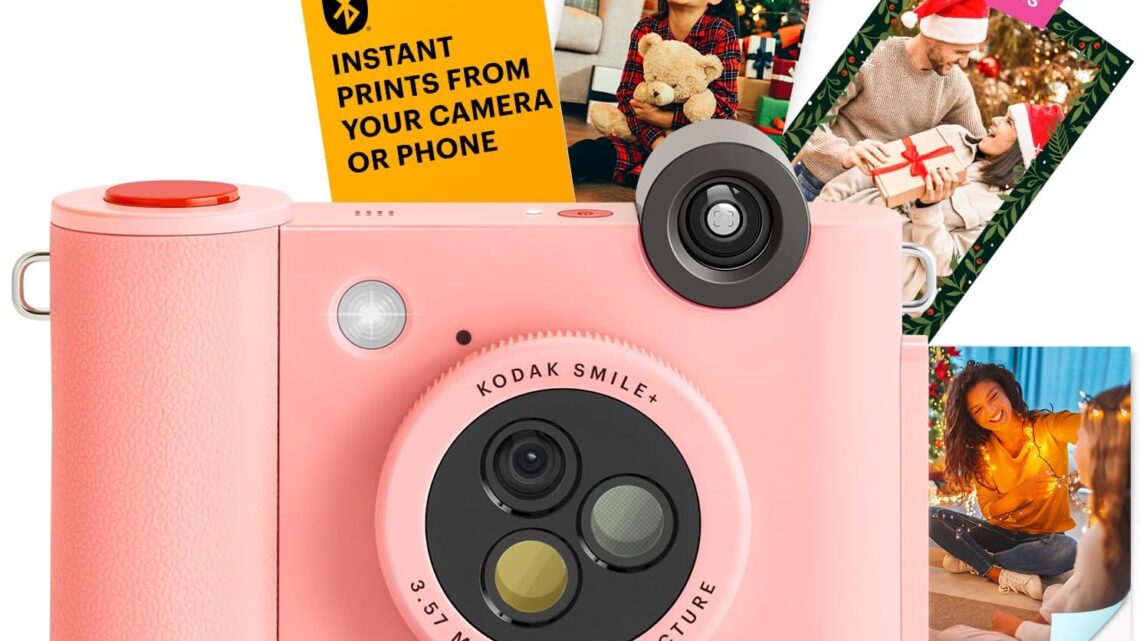 KODAK Smile+ 2-in-1 Digital Instant Print Camera & Wireless Bluetooth Photo Printer – 10MP, Special-Effect Rotating Lens, Zink 2×3” Sticky-Back Photos, Print via Fun App from Smart Devices – Pink