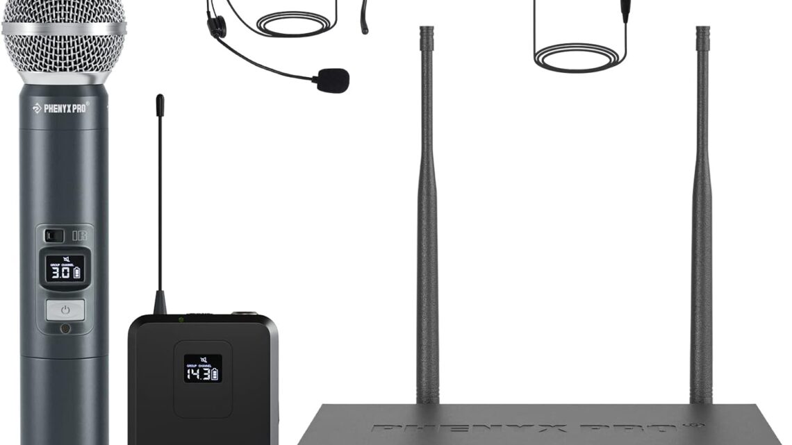 Phenyx Pro Wireless Microphone System, Dual Mic Set with Handheld/Bodypack/Lapel Mics,Auto Scan, 2×100 UHF Frequencies,328ft Range,Cordless Microphone for Singing, Karaoke, Church(PTU-71-1H1B)