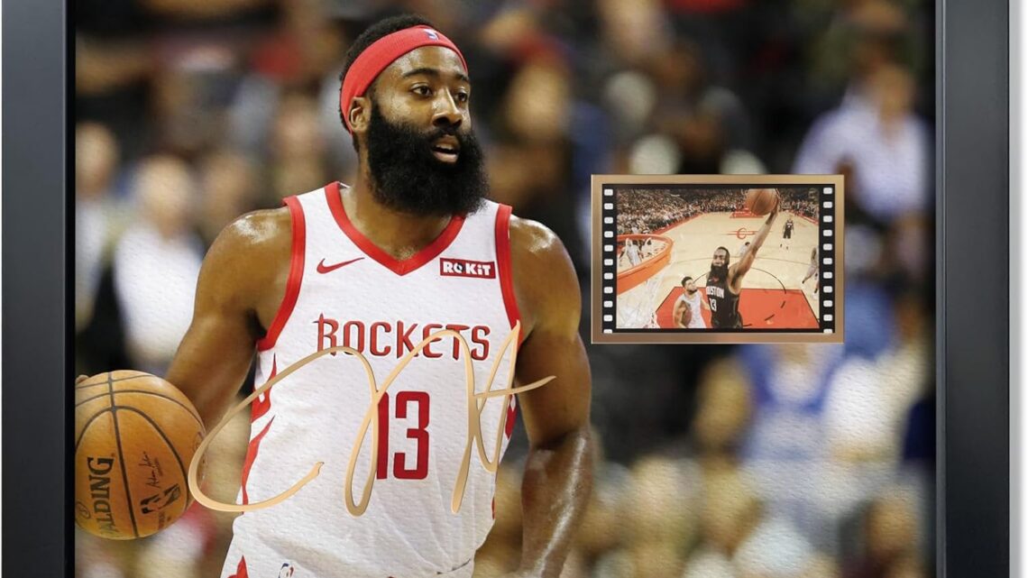 sufenvera Signed James Harden Memorabilia Film Photo Framed Poster,Basketball Star Artwork Collection,Gifts for James Harden Fans on Birthday Thanksgiving Christmas 10×8 Inches