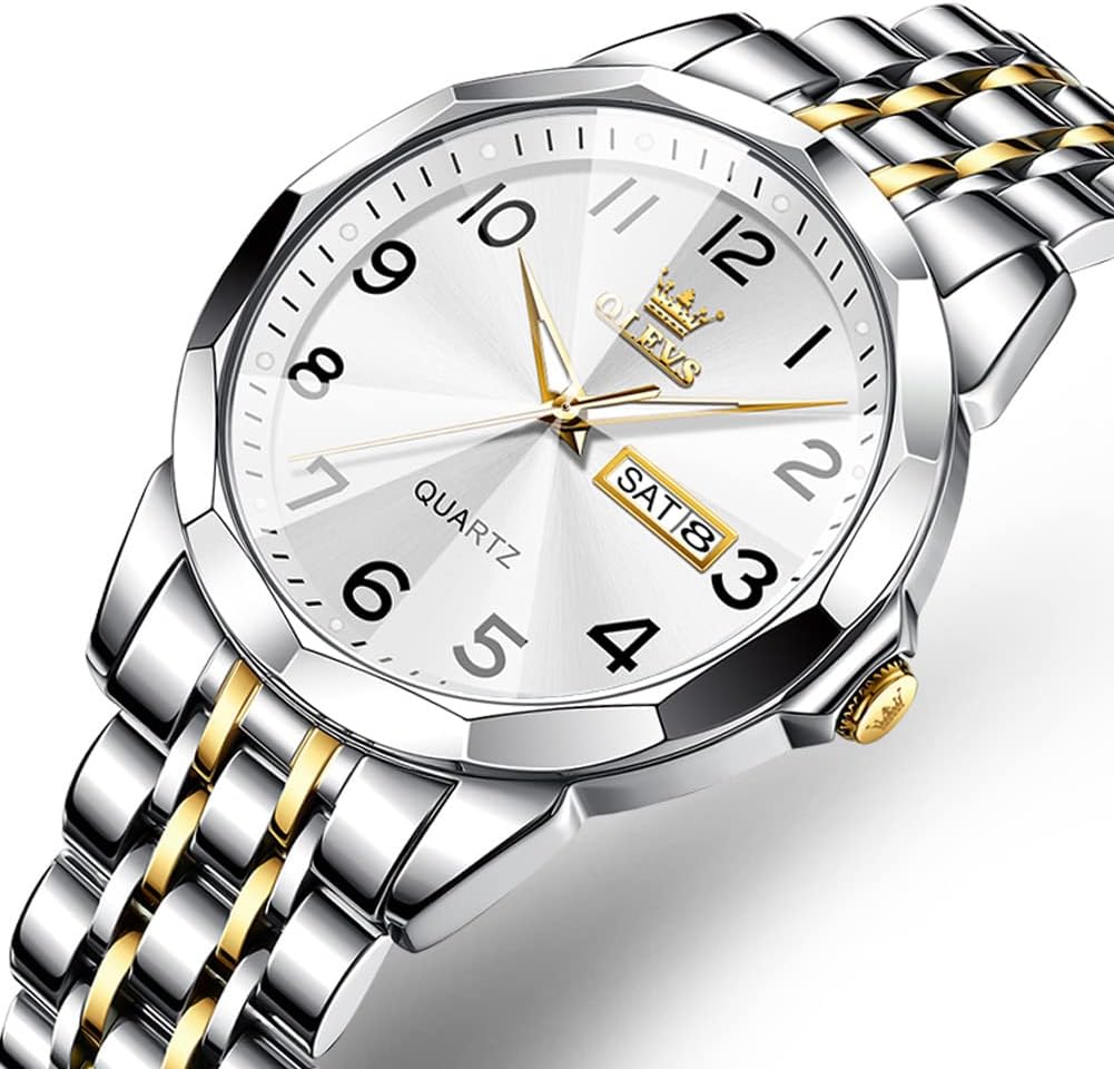 OLEVS Watch for Men Business Dress Diamond Analog Quartz Date Luxury Classic Stainless Steel Waterproof Luminous Two Tone Wrist Watch