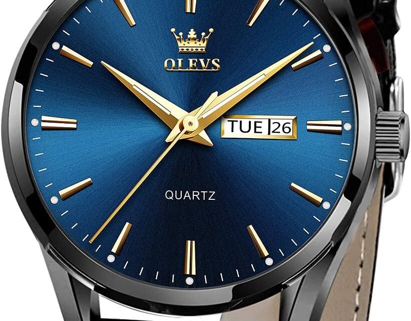 OLEVS Watches for Men Brown Leather Gold Case Analog Quartz Fashion Business Dress Watch Day Date Luminous Waterproof Casual Male Wrist Watches