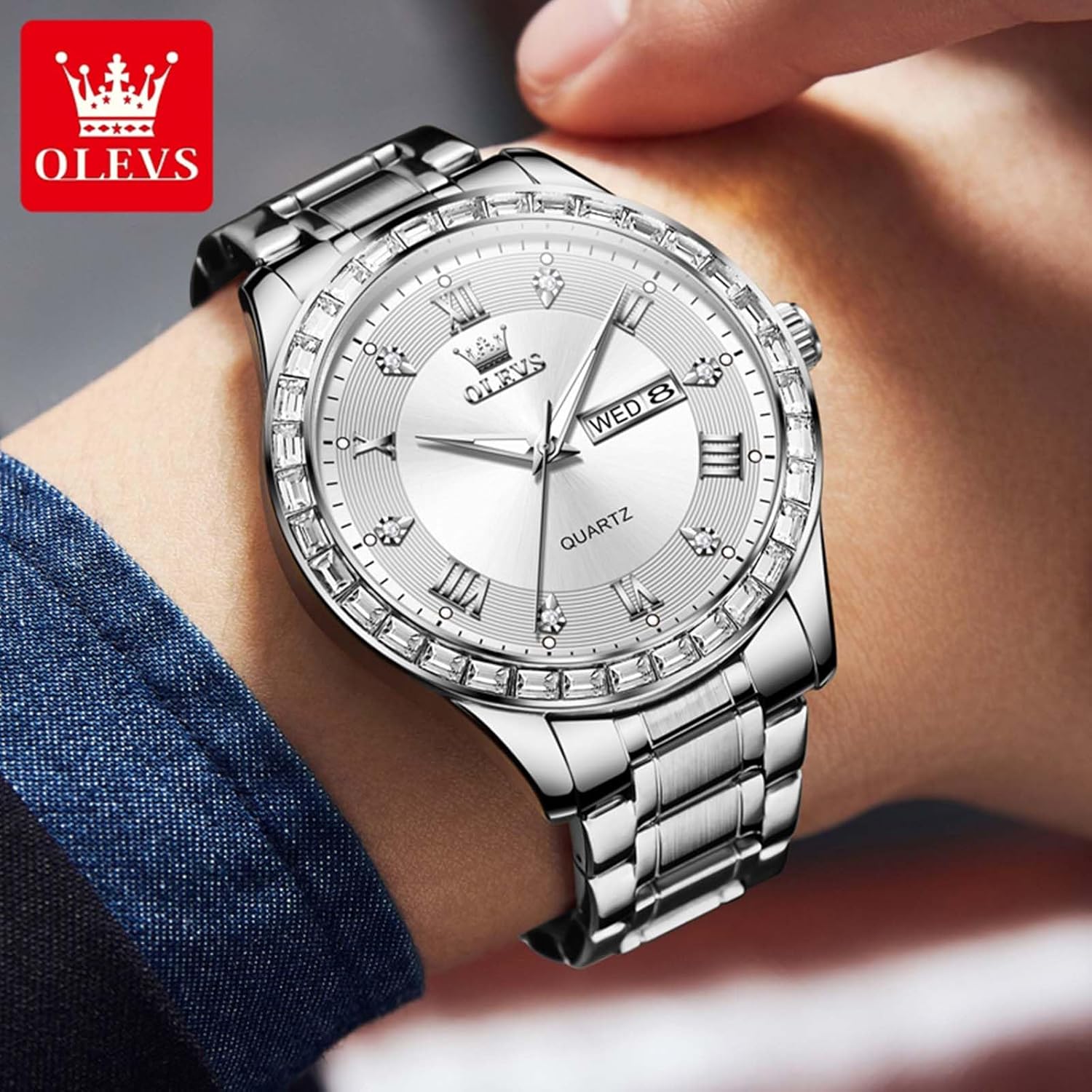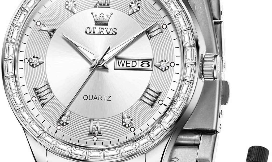 OLEVS Luxury Men Silver Watches, Diamond Wrist Watches Embrace the Sparkle of Modern Glamour.