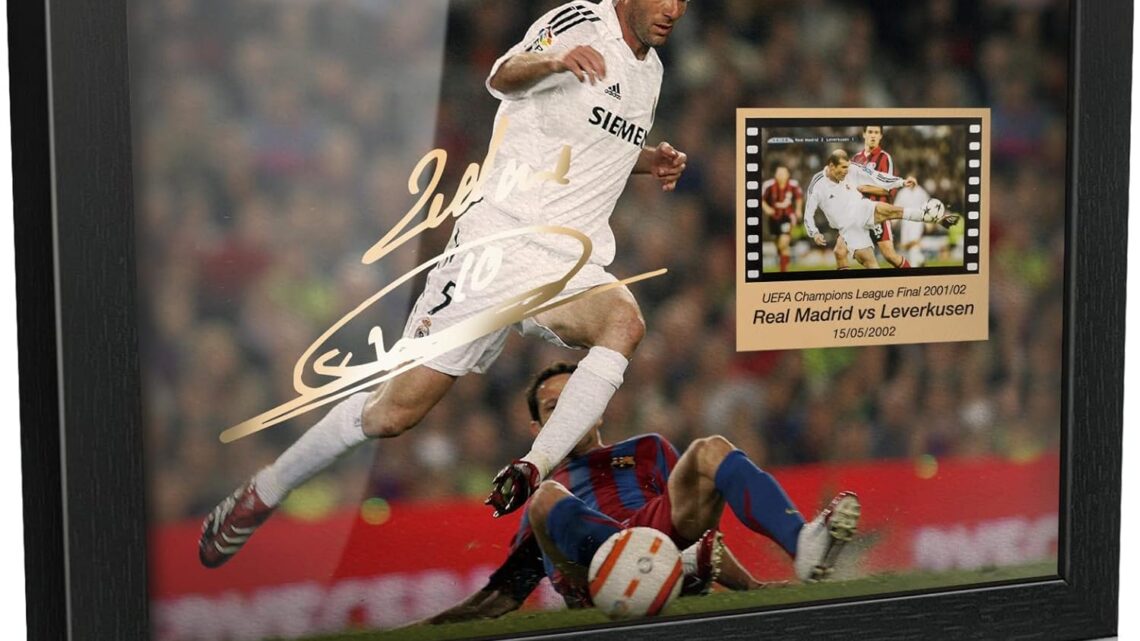 ORIMAMI committed to designing more high-quality collectible gifts and home office decor for huge sport/soccer/basketball fans,suitable for most occasion.The receiver will love it; The Pichture Signed:Our designs feature a digital reprint of the original autograph.They are printed,not hand signed originals; Film Mini Cell Showing: one of the scenes from UEFA Champions League Final 2001/02;05/15/2002 Real Madrid vs Leverkusen; This black frame made of high-quality MDF wood,high transparent PMMA panel;HD printed picture more clear;Picture size:8×6 inches,Frame size:9x7x0.5 inches(23x18x1.2 cm).Framed type is desktop support; A great gift and a perfect addition to your home office decor.Should you have any doubt please contact us before purchase,and will do all we can to resolve any problems.If you are not satisfied with our products,and we provide up to 30 days of exchange or refund services.
