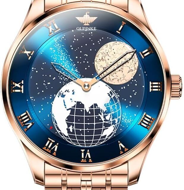 OUPINKE Men Automatic Watch Starry Sky Moon Phase Rose Gold Silver Stainless Steel Self-Winding Luxury Business Waterproof Wrist Watch
