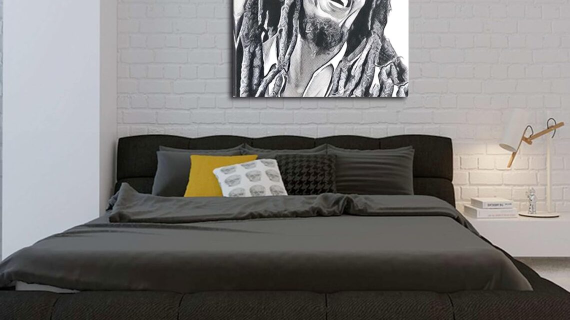Startonight Canvas Wall Art Black and White Abstract Bob Marley Celebrity, Artwork Modern Framed Original Art Painting 32″ x 32″