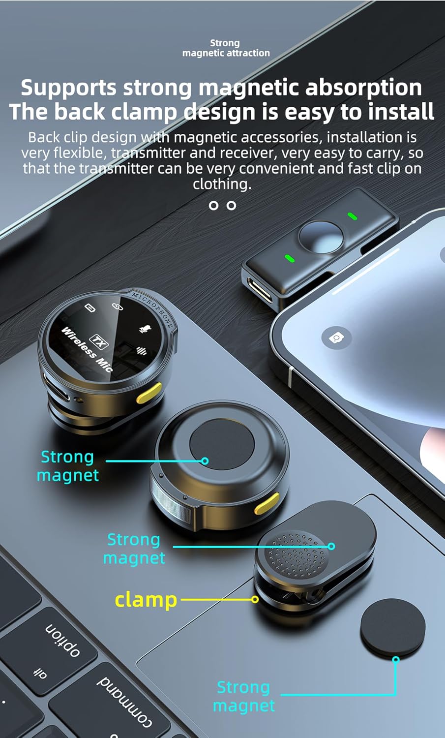 Wireless Lavalier Microphone for iPhone iPad Laptop Android with Charging Case 164ft Transmission Range & 72 Hours Battery, Magnetic & Lavalier Wear Wireless Mic for Video Record, Interview, Vlogs