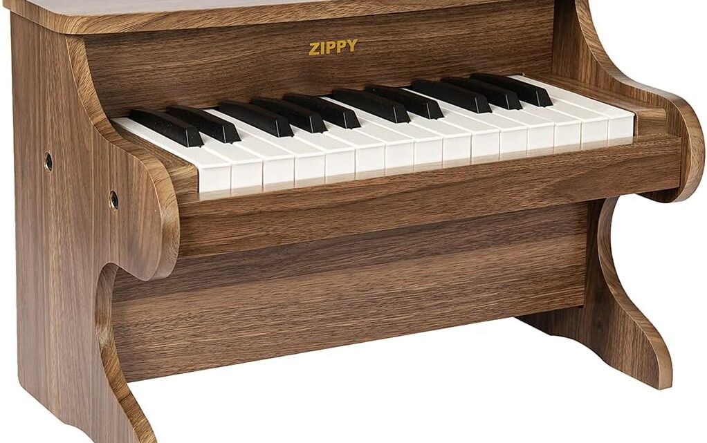 ZIPPY Kids Piano Keyboard, 25 Keys Digital Piano for Kids, Mini Music Educational Instrument Toy, Wood Piano for Toddlers Girls Boys, Walnut