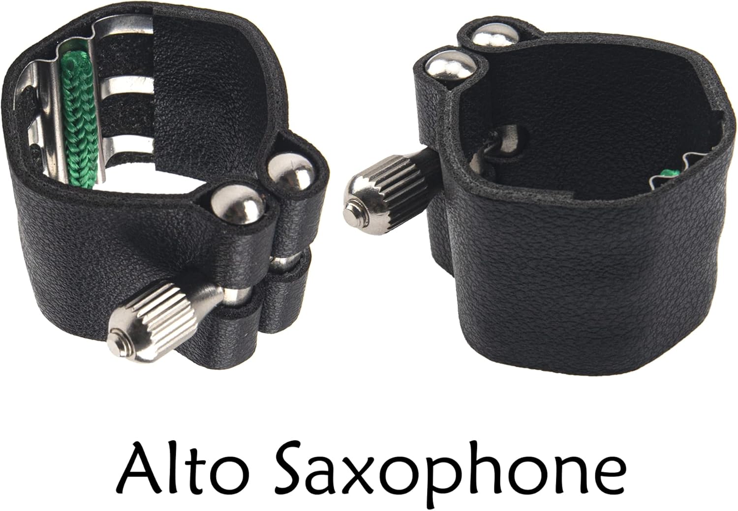 2Pcs Yootones Black Artificial Leather Saxophone Mouthpiece Sax Ligature Fastener Compatible with Saxophone Rubber Mouthpiece (Alto Saxophone)