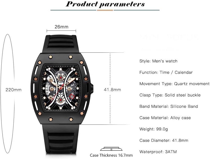 Unique design large dial fashion square watches skeleton design, japanese quartz movement and battery ensure accurate timing and long service time.