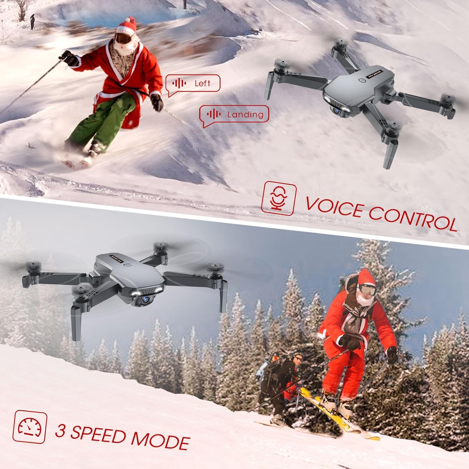 3 speeds mode(low/medium/high) makes this super friendly and funny to newbies and experts. Even try switching different speed modes when the drone is in flight for more fun.