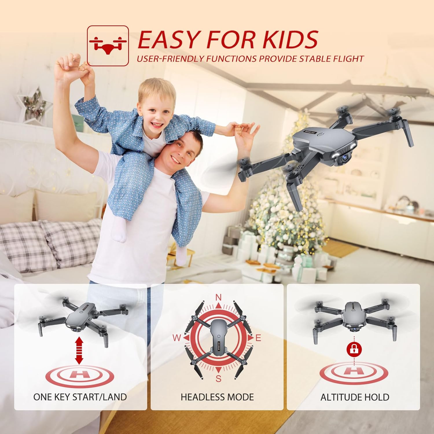 Ultimate Beginner-Friendly Kids Drone: The NXDRONBA camera drone simplifies flying with its One-Key Start/Land feature. With Altitude Hold for stable hovering, it’s perfect for capturing crisp photos and smooth videos. This drone is not just a toy—it’s an educational and entertaining tool for kids