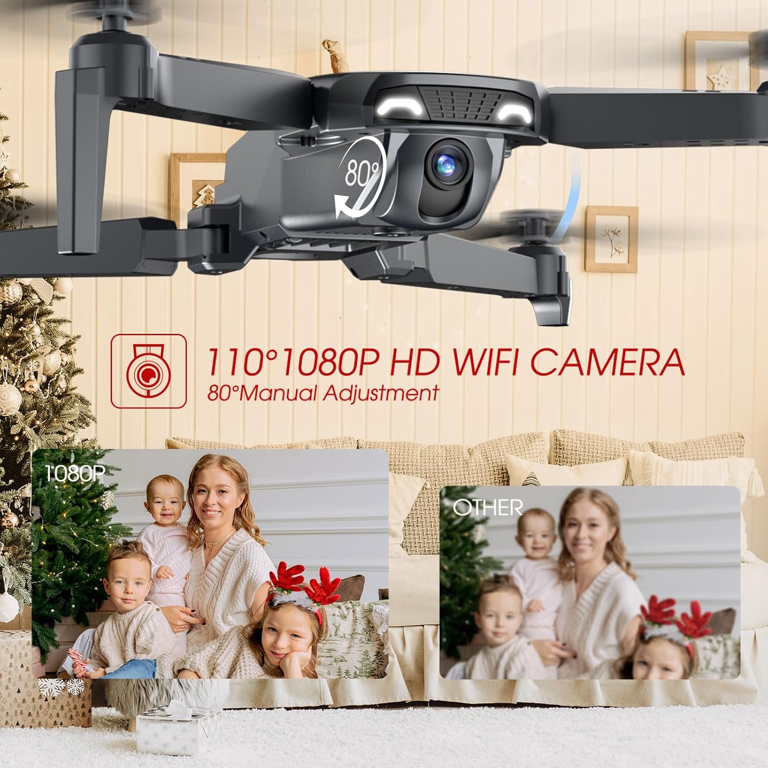 1080P HD WiFi Adjustable Camera & APP Control: Experience immersive flight with the 1080P HD Camera FPV Drone. Its 90° adjustable camera provides a live video feed via the APP, delivering a thrilling first-person view (FPV) for an enhanced aerial adventure