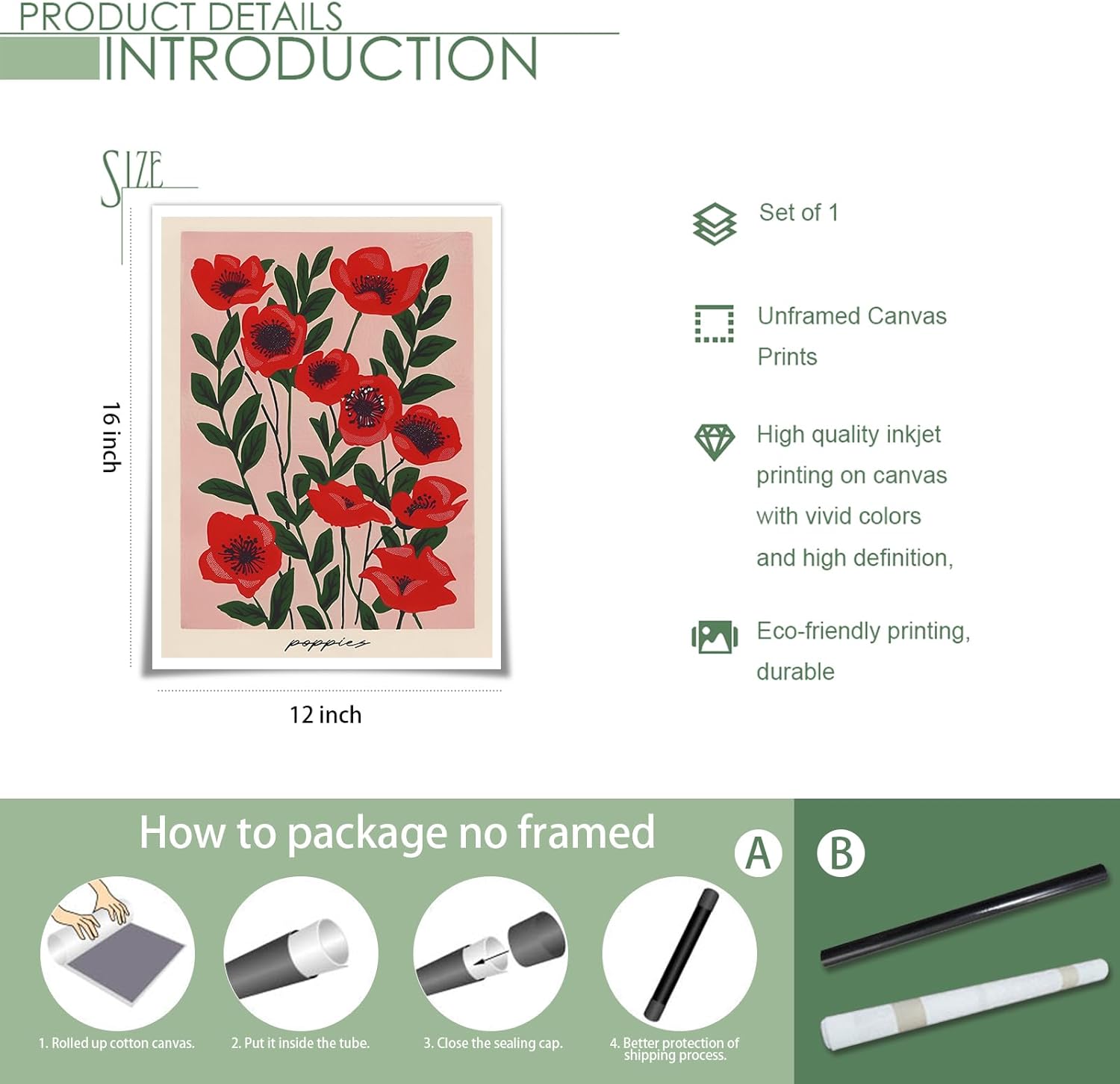 【Poppy Wall Art Print Poster】Mid century modern wall art poster size is 12 x 16in . Famous art posters Do Not include frames.you can prepare a frame with a size of 12 x 16 inch or larger to match your wall painting;