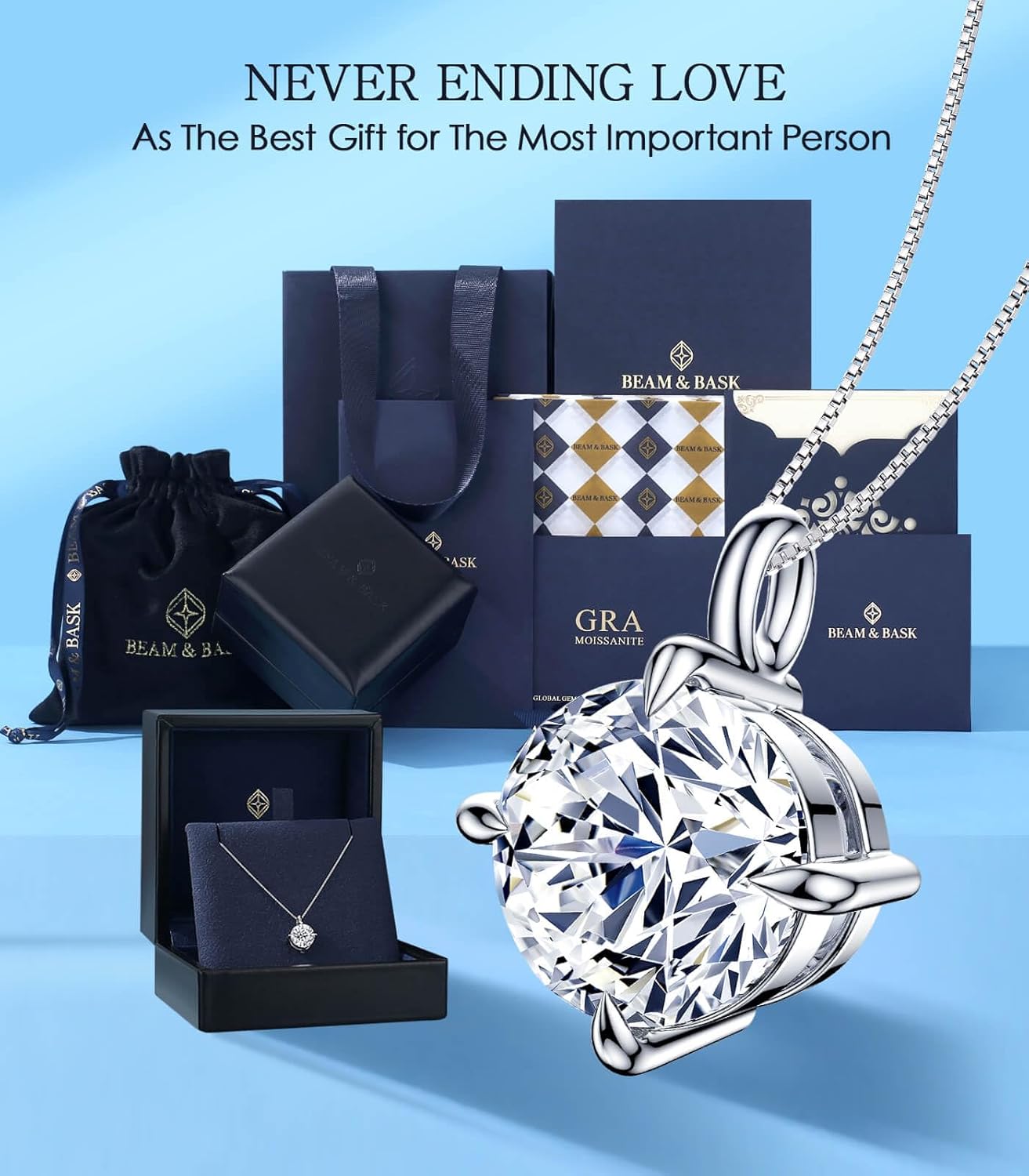 Beam & Bask Moissanite Pendant Necklaces for Women, Anniversary Romantic Gift for Her, Birthday Gifts for Wife from Husband, Best Jewelry Present to Girlfriend Mom Daughter for Christmas Valentines
