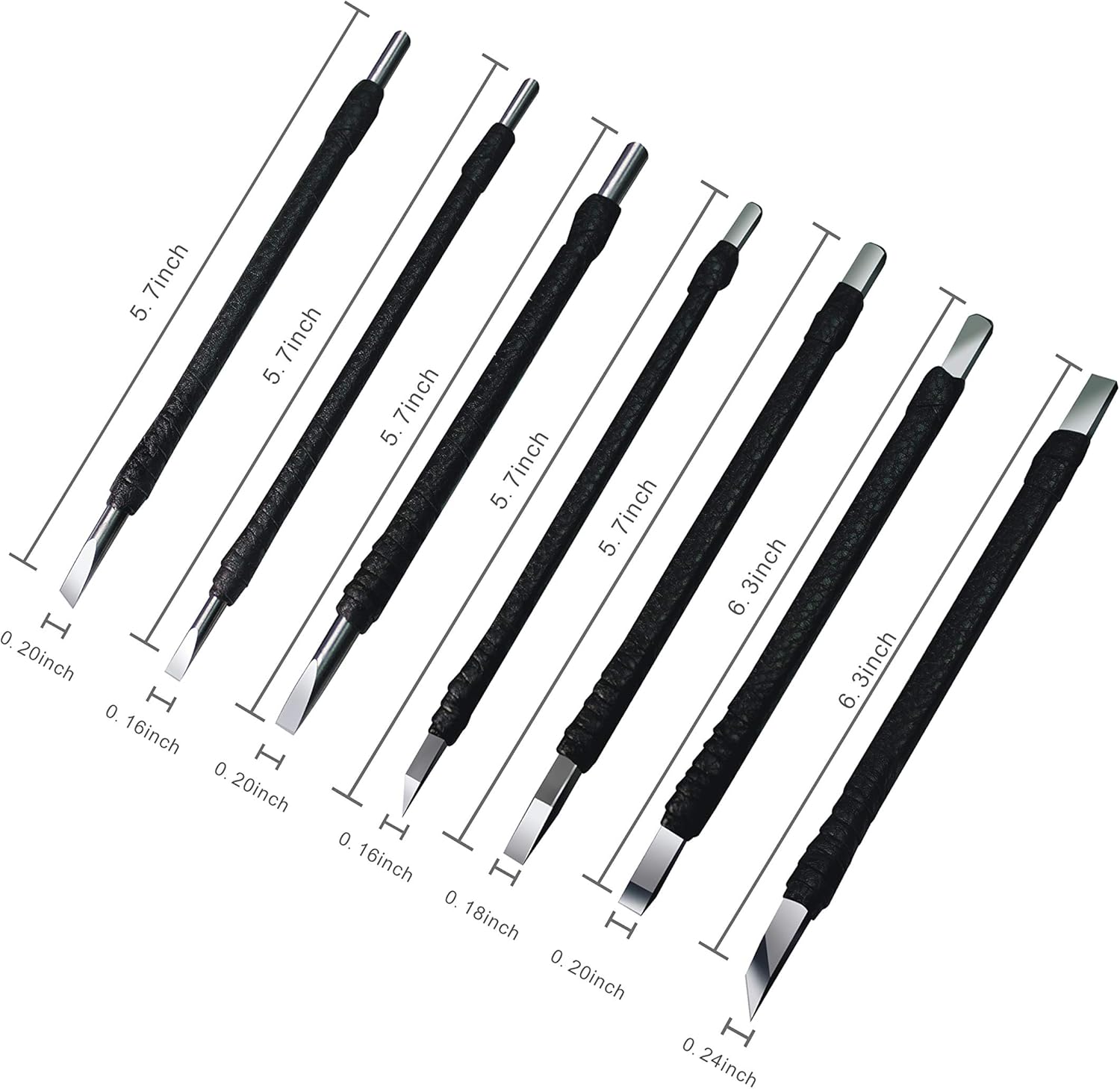 ☛COMFORTABLE GRIP—The handle of the wood carving tools has been treated specially, as its wrapped in leather thread. The thicker part of the handle fits well into the concave part of the carver’s hand, and gives the longer middle finger a good grip on it. The ergonomic structure provides the best engraving process and the best weight ratio to reduce fatigue and improve engraving accuracy.
