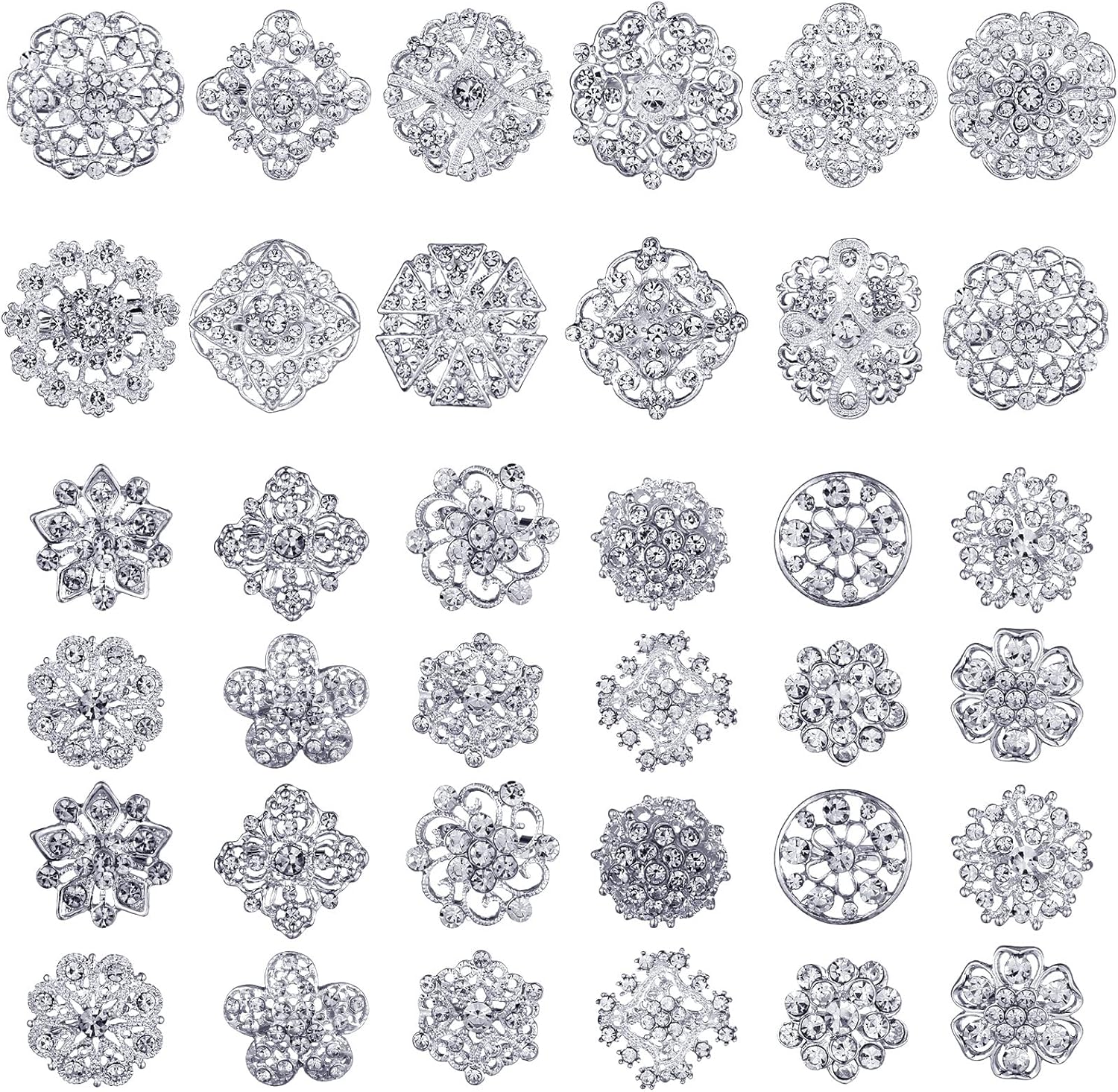 36 Pieces Clear Rhinestone Brooches for Crafts Crystal Flower Brooch Pins with Rhinestones Sliver Bulk Brooches Jewelry for Woman Flower Lapel Badge Pins DIY Wedding Bouquet Broaches Kit