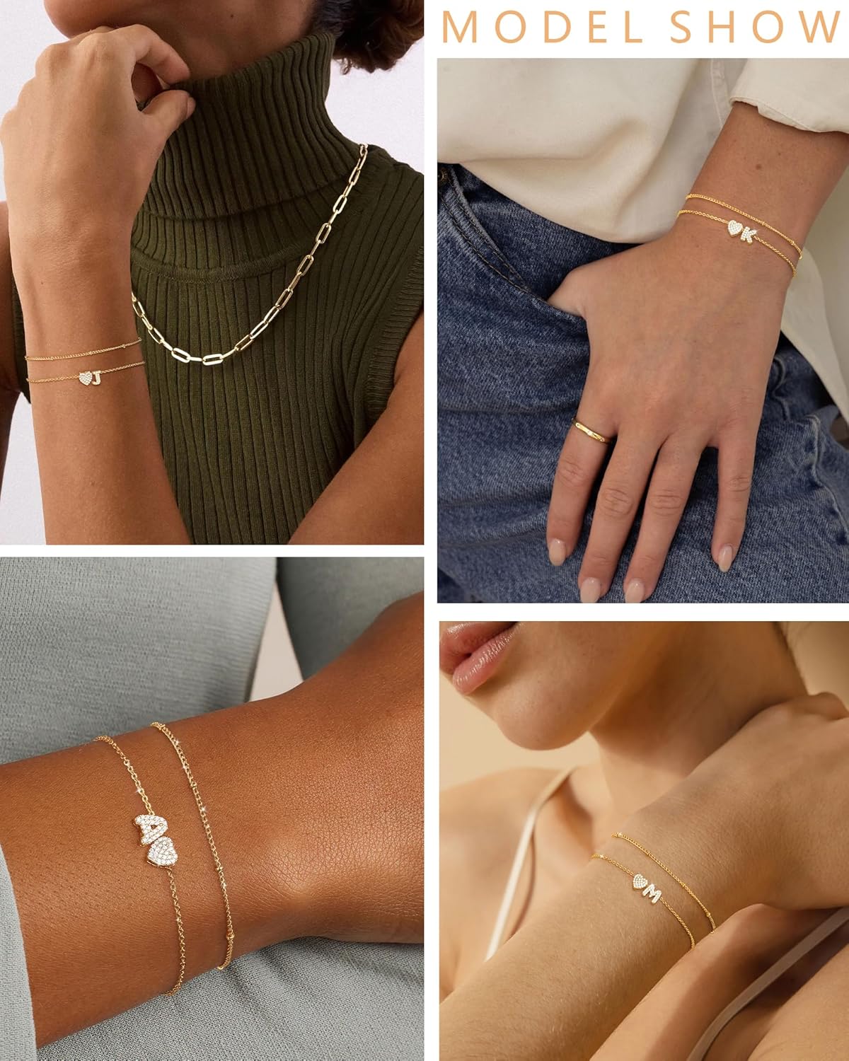 Honsny Dainty Gold Initial Bracelets for Women Trendy 18K Gold Plated A-Z Heart Initial Charm Bracelets Non Tarnish Layered Cute Letter Gold Bracelet Bridesmaid Valentine’s Day Jewelry Gifts