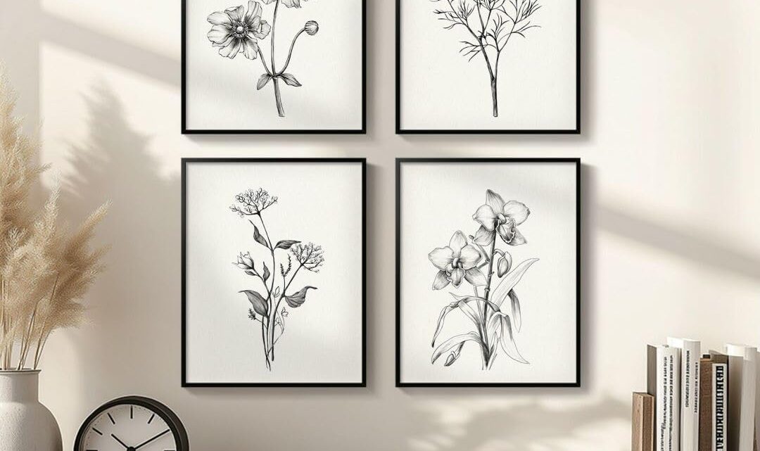 [As Great As the Picture]: We use high-quality premium inks to create realistic prints, ensuring that the actual product you receive is exactly the same as the product image you see. With a simple and vintage black and white pattern, depicting different kinds of floral plants, it adds a lively and artistic touch to your room. It is perfect for hanging in various rooms such as the living room, bedroom, bathroom, dining room, study or office area. It brings a touch of elegance and beauty to your home decor.