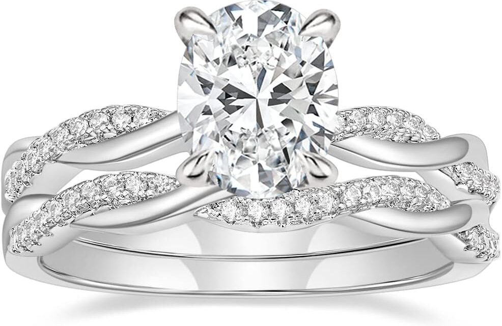 Mameloly 3ct Engagement Rings for Women Oval Cut Bridal Ring Sets Cubic Zirconia Wedding Band Twisting Infinity Pave Set Size 4-12