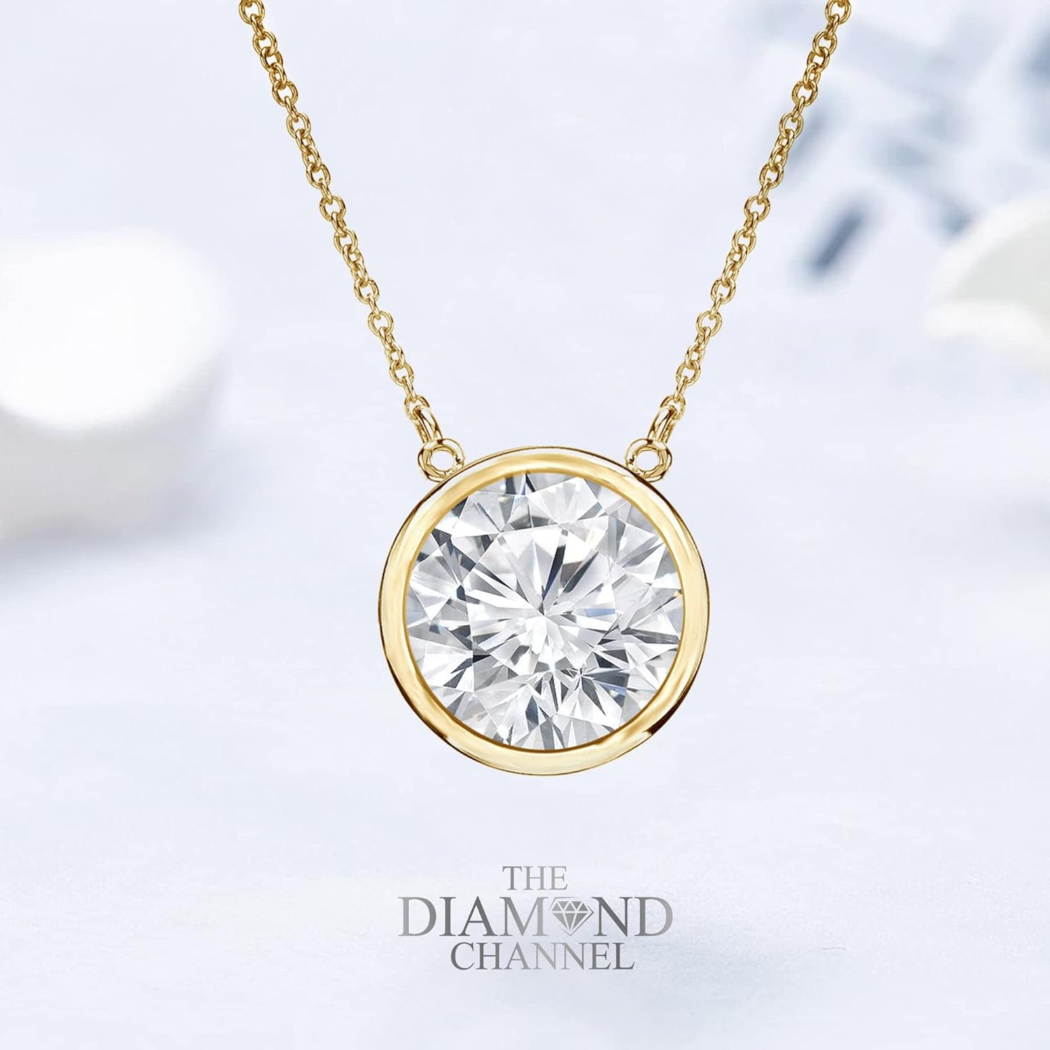 Stunning diamond pendants by The Diamond Channel, available in four-prong or bezel settings, feature brilliant round diamonds hand-picked by expert diamantaires for quality and beauty. They are graded by independent diamond laboratories for color, clarity, cut and carat weight. Buy them with confidence and wear them with pride.